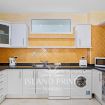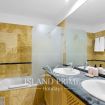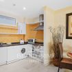 The apartment is thoughtfully equipped for comfort, featuring a stylish bathroom with double sinks and a spacious walk-in closet, making it perfect for extended stays.